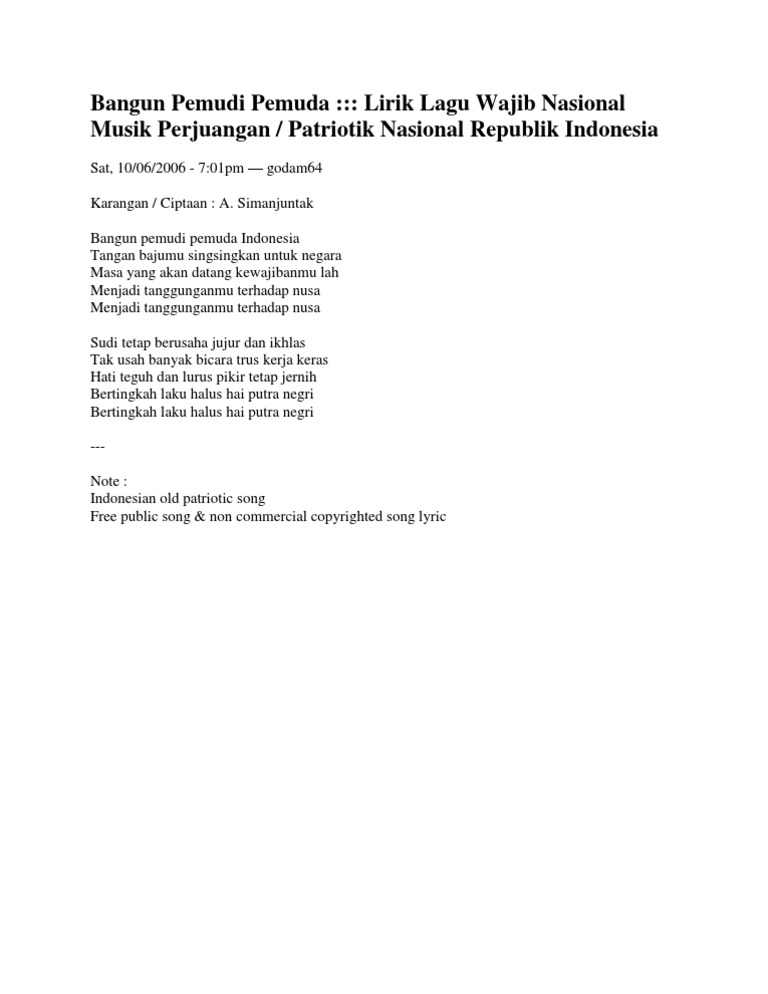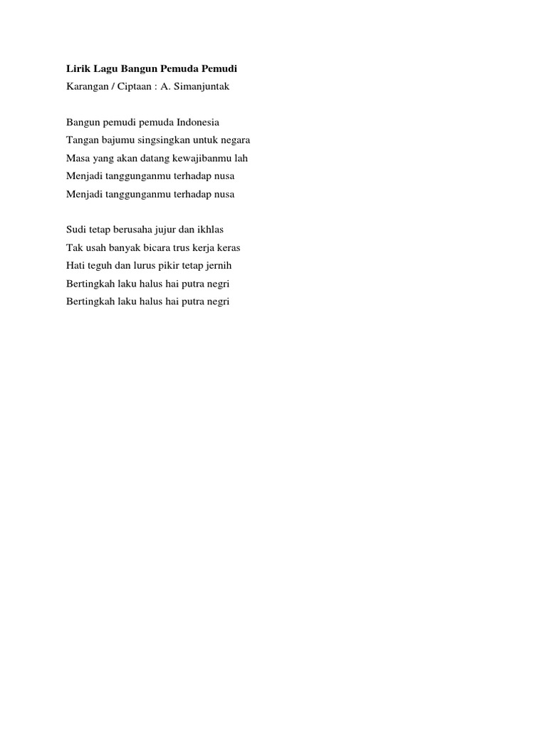 Lirik Lagu Bangun Pemuda Pemudi Pdf